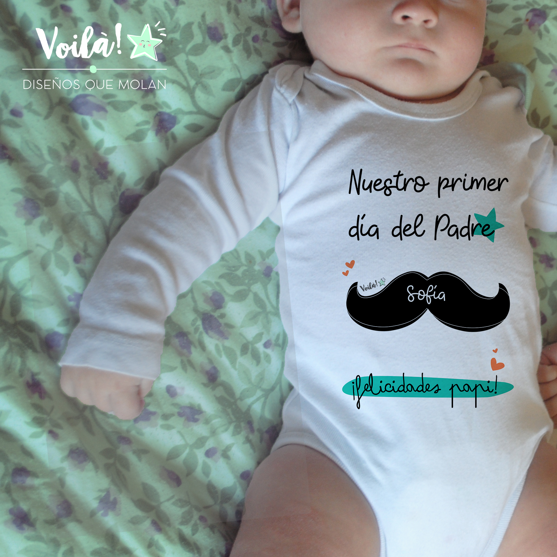 El body seria de manga larga, talla 0-3 meses y el modelo que me gusta es el «Body bebe personalizado primer dia del padre»(el del bigote)