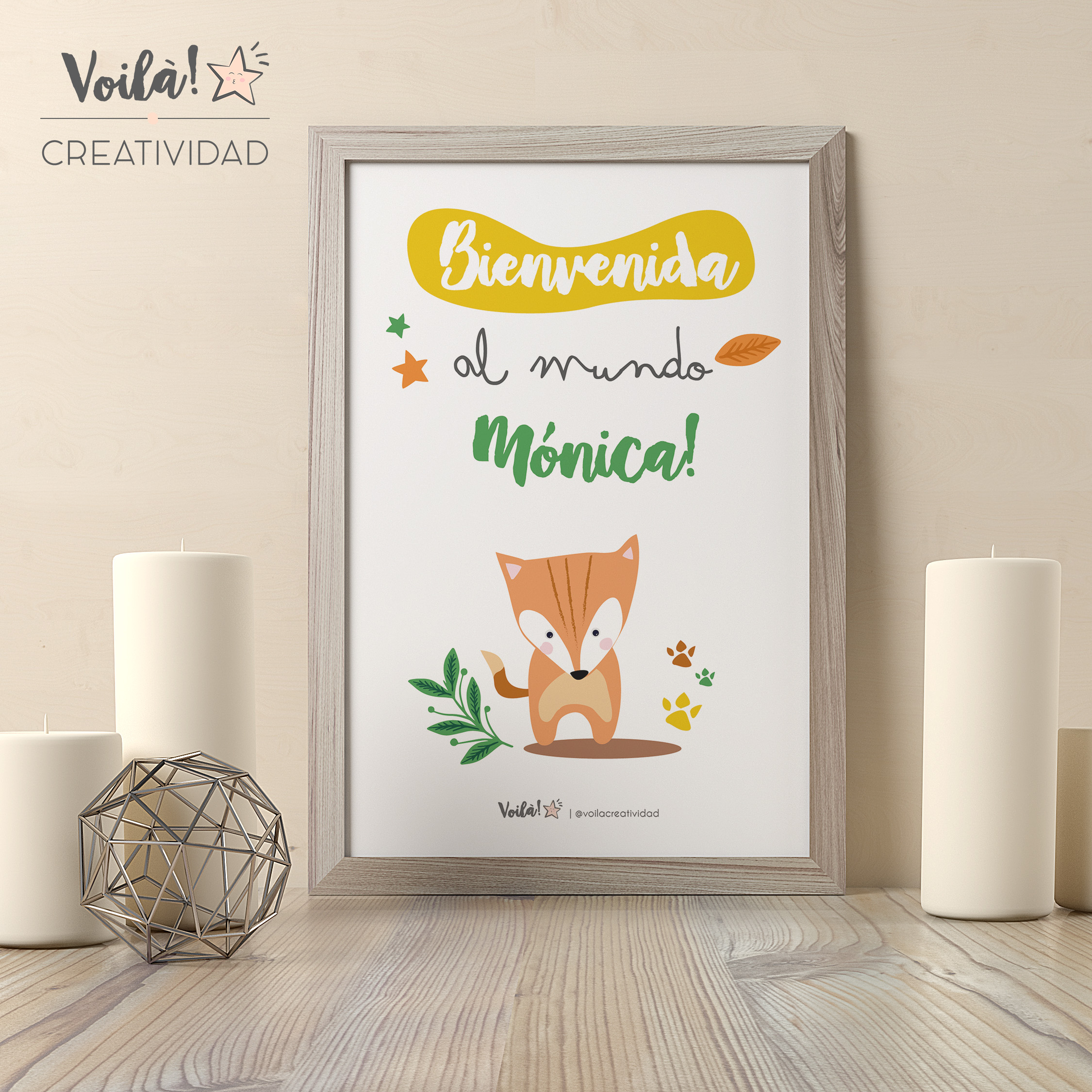 Bienvenida al mundo bebe cuadro otoño crema zorrito personalizado 30 octubre, 2018 | Voilà Creatividad