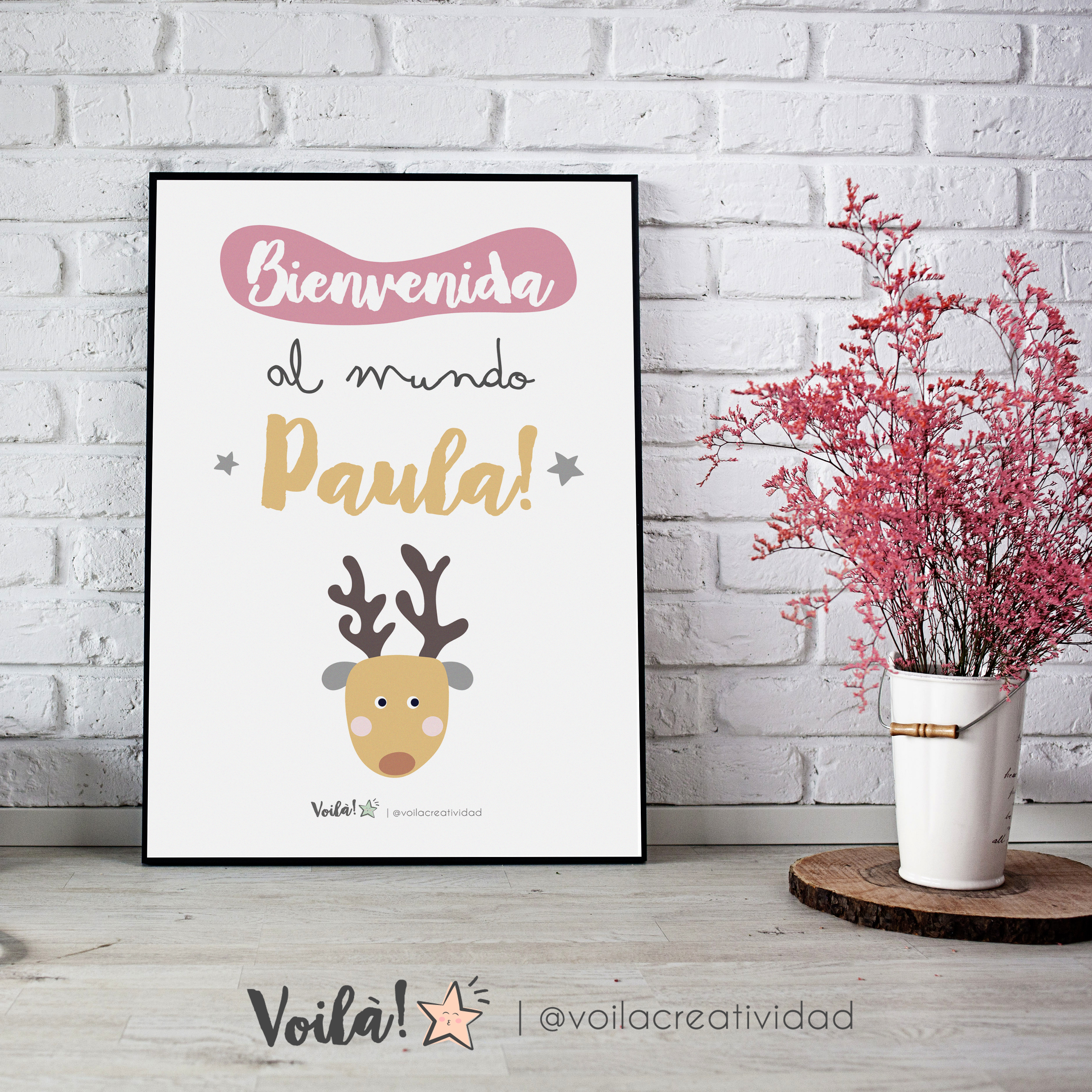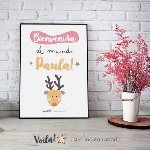 Lámina bienvenida al mundo Paula reno